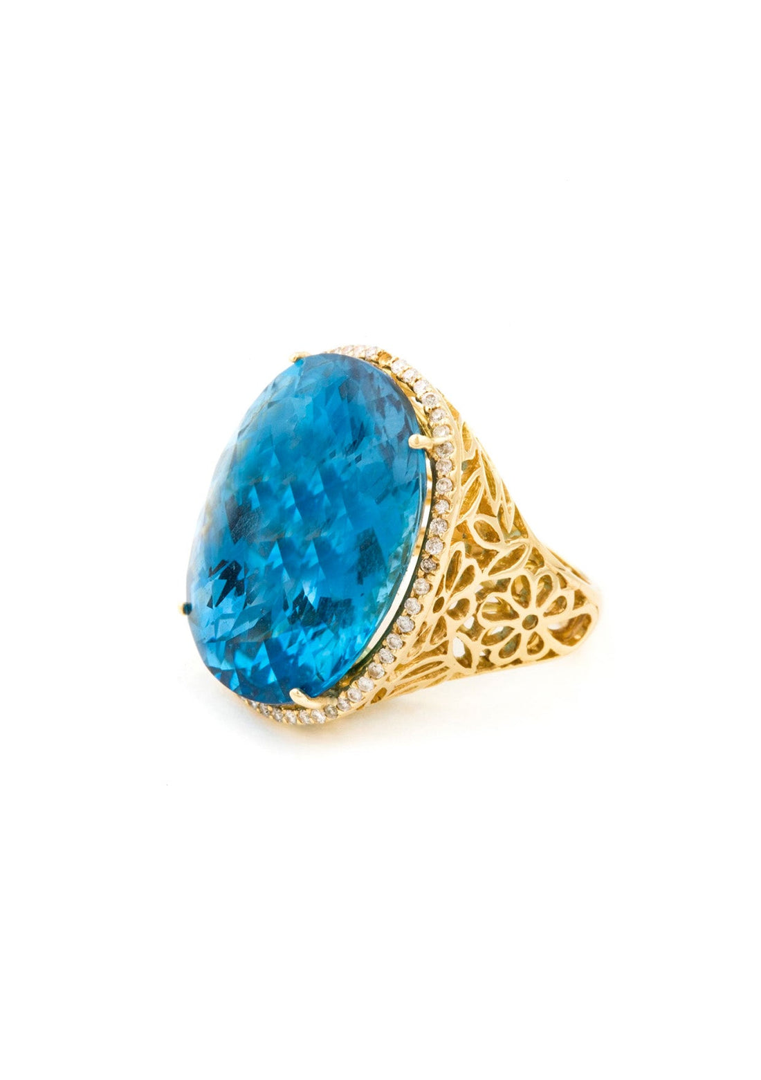 Blue Topaz Pavee Diamond Solid 18k Gold Ring