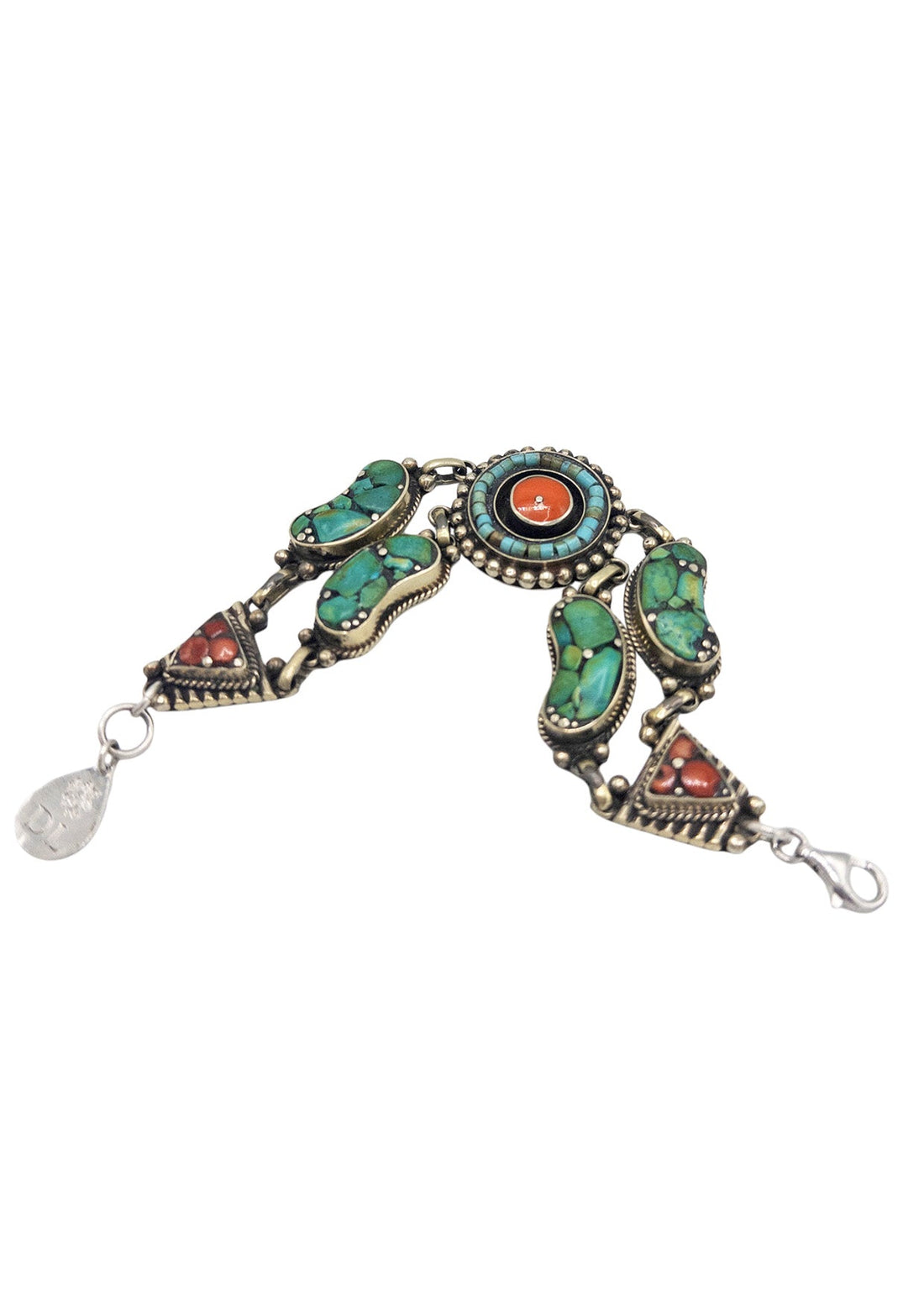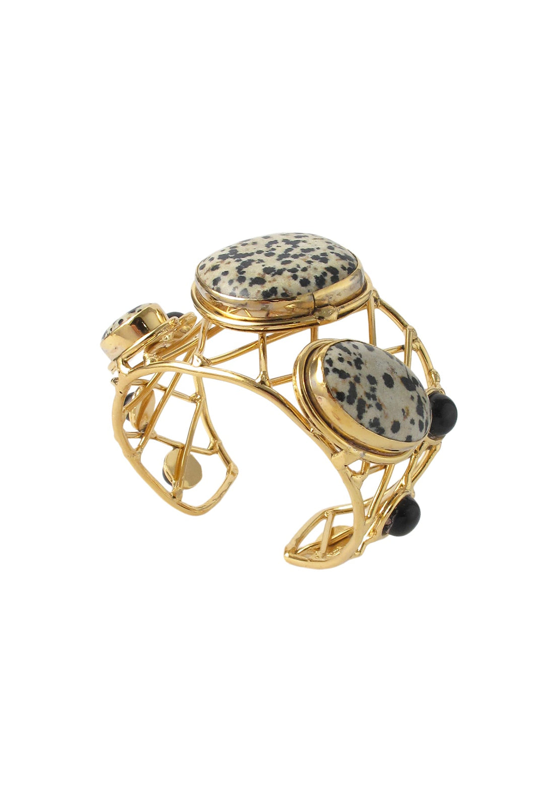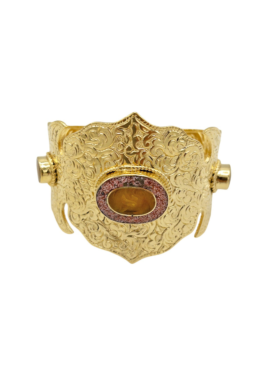 Coral and Yellow Jade Roman Goddess Gold Cuff