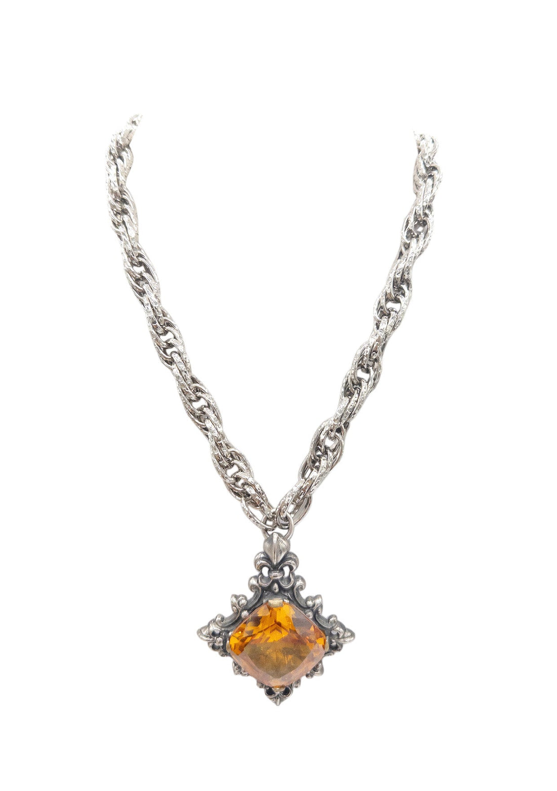 Crystal Amber Rhodium Pendant Necklace