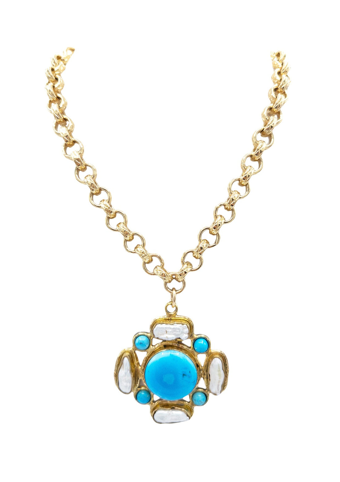 Pearl and Turquoise Pendant Necklace
