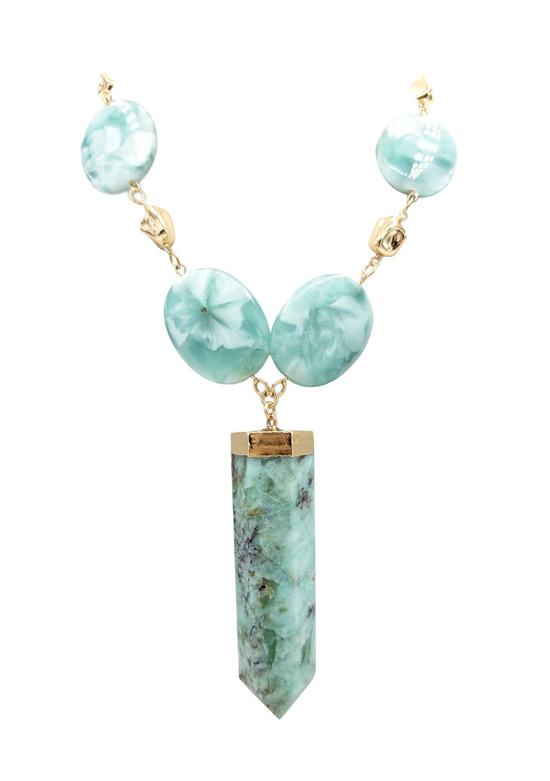 Aqua Marine in Gold Foil Pendant Amazonite Station Necklace