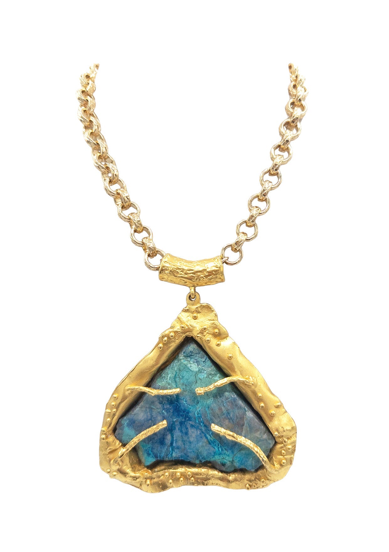 Chrysocolla in Handmade Gold Setting Pendant Necklace