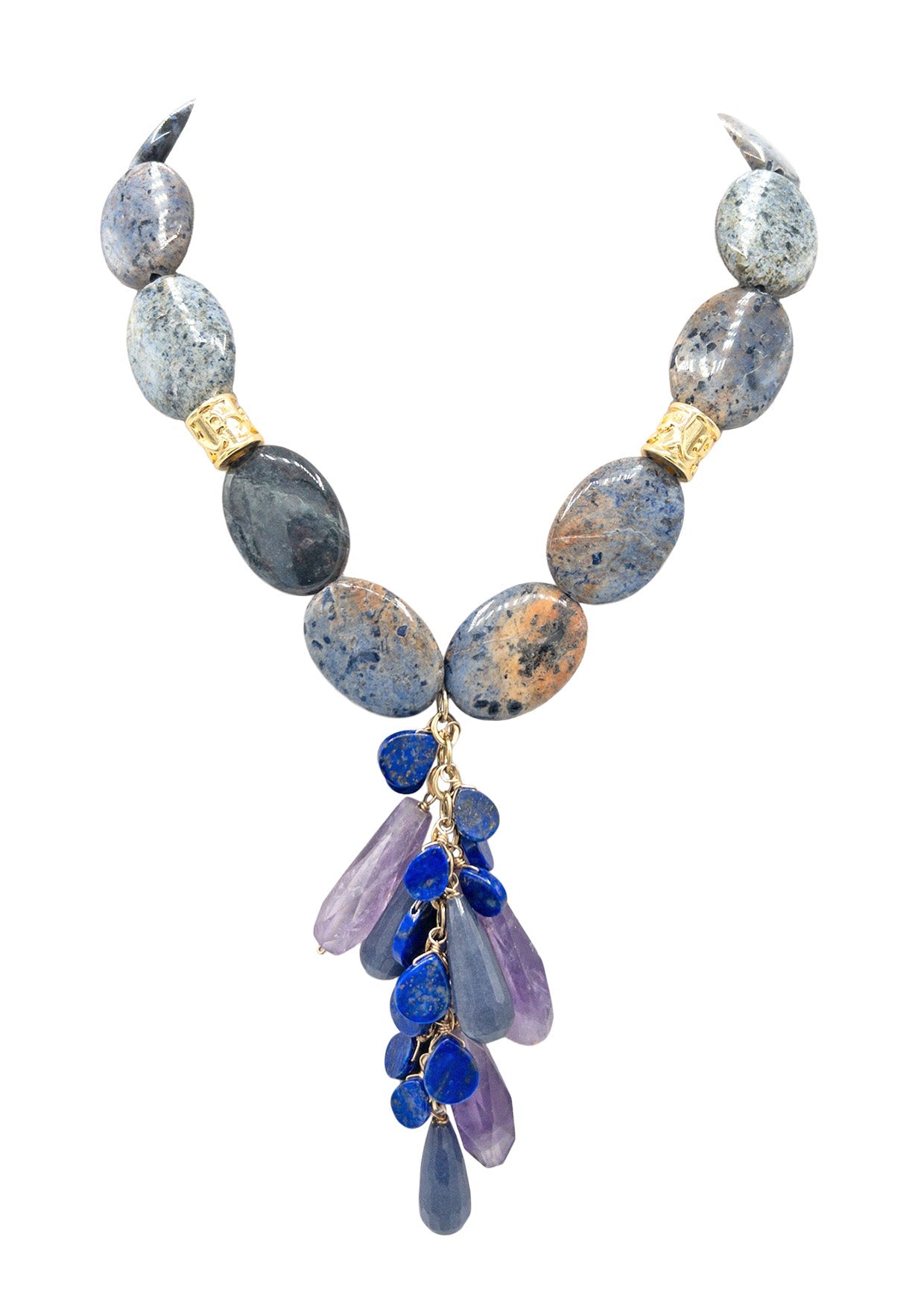 Denim Lapis Amethyst Cluster Pendant Necklace