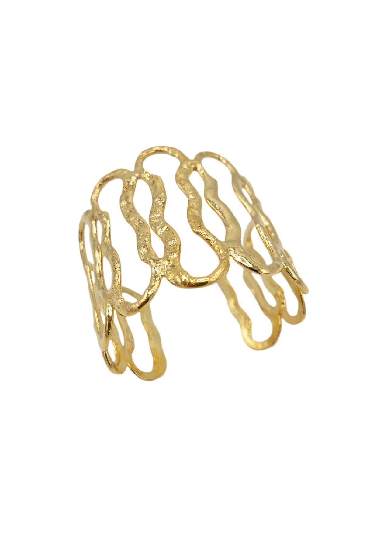 This ultra-versatile, fashion-forward open wave gold cuff bracelet was designed to elevate your sophisticated wardrobe with a touch of bohemian inspiration. Featuring a unique open wave loop gold design.
