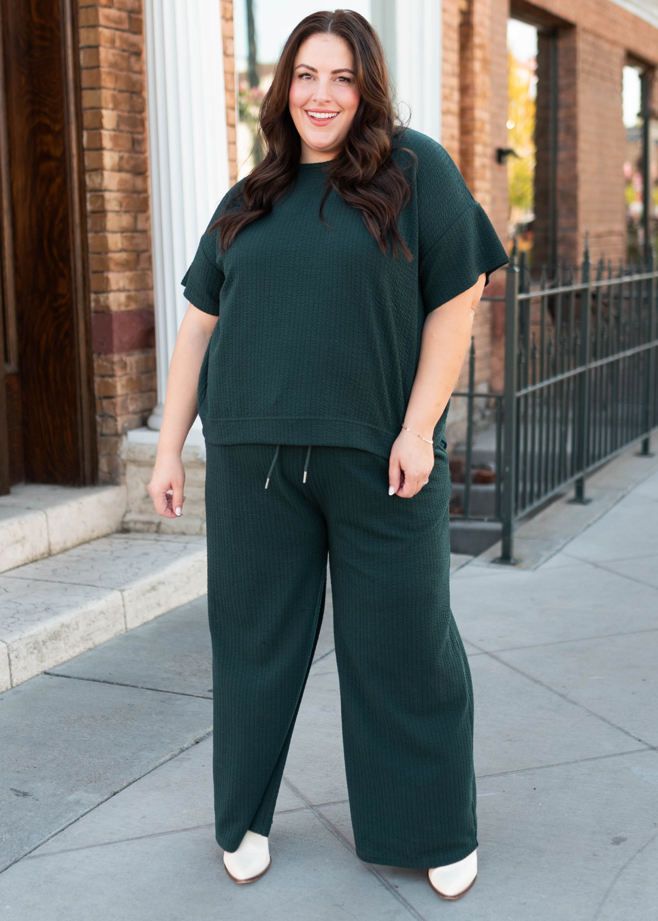 The Oaklyn Bottoms are your new favorite way to stay comfy and cute. Designed in a rich forest green hue, they feature a flattering wide-leg silhouette, a soft drawstring waist, and functional side pockets for that perfect mix of style and ease. Whether you¡¯re dressing them up or keeping things casual, these exclusive bottoms are a must-have for every closet.